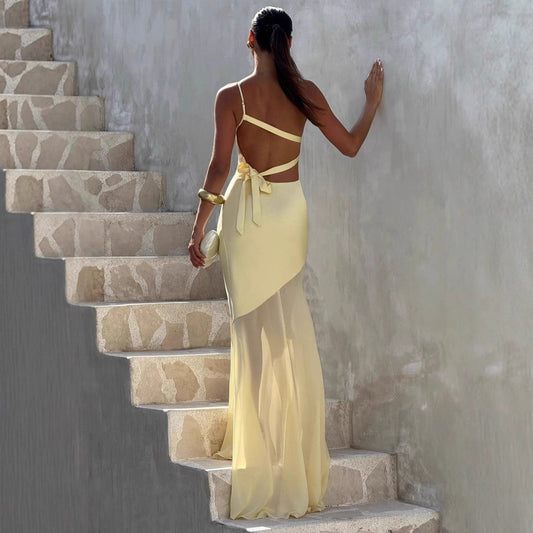 Asymmetrical Maxi Satin Dresses CS1076