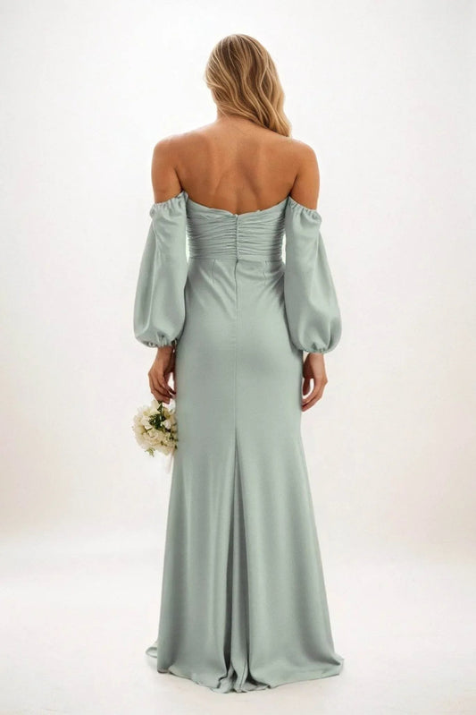 Solid Color Chiffon Off-Shoulder Fitted Long Bridesmaid Dress With Irregular Hem