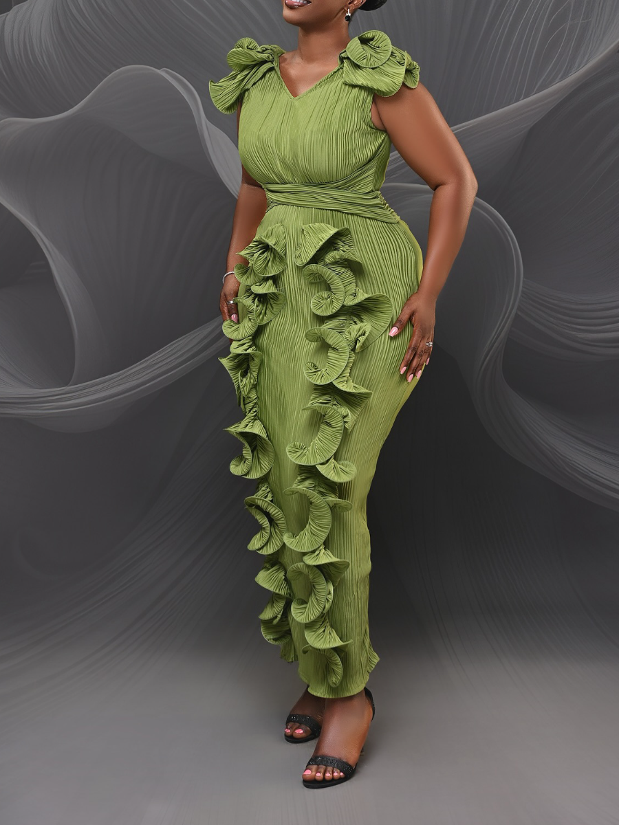 Elegant V-neck Tassel Maxi Dress