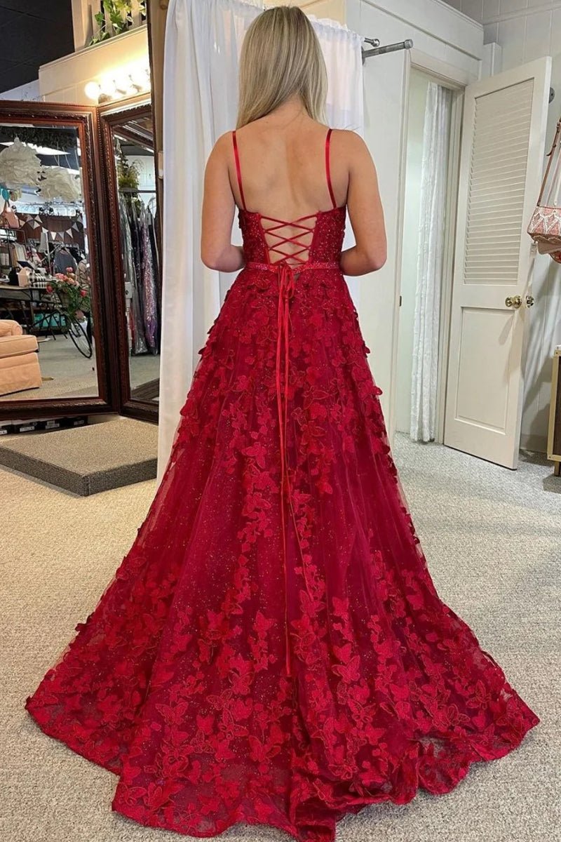 Shana | Cute A Line Scoop Neck Red Lace Prom Dresses with Beading