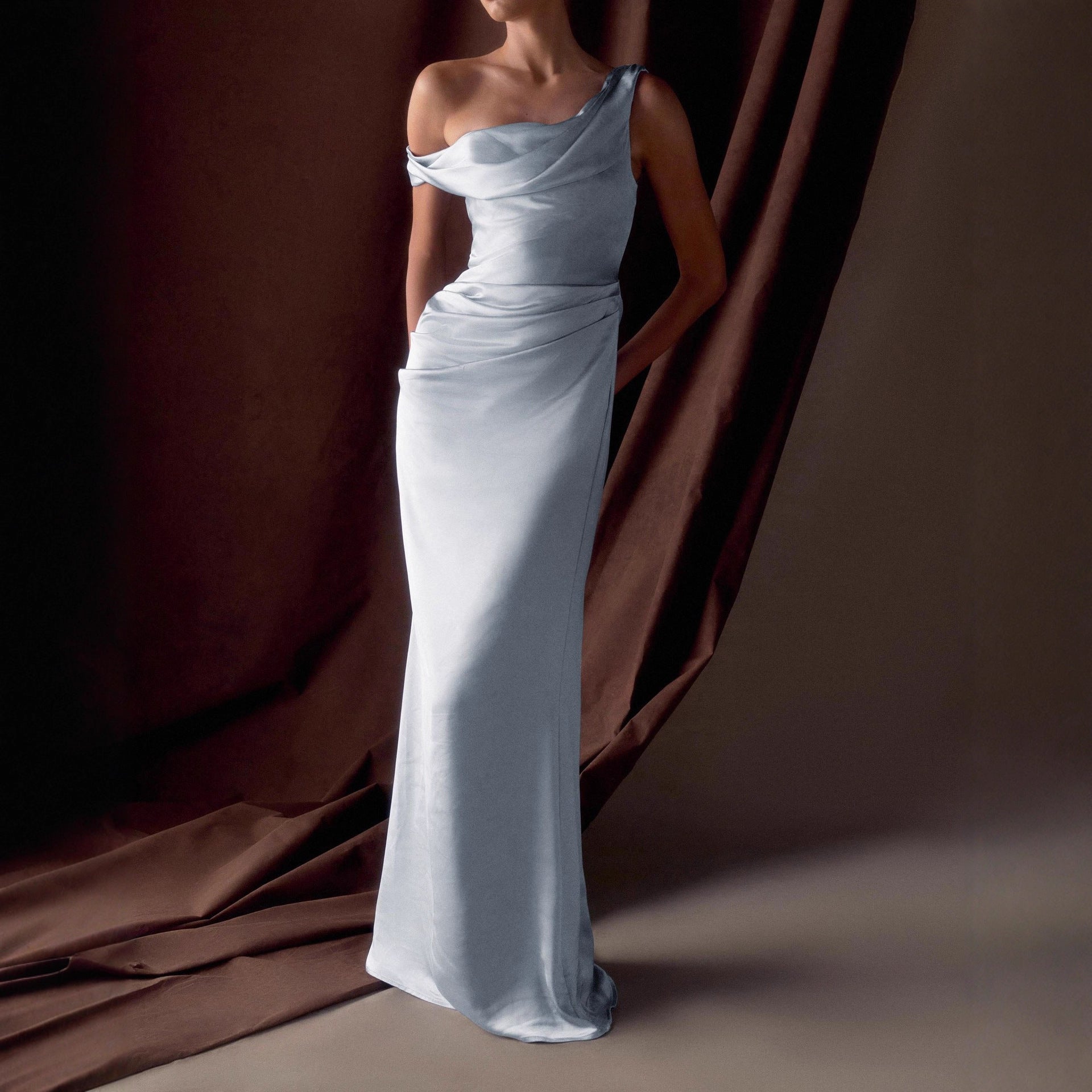 Chic One-Shoulder Trailing Dress